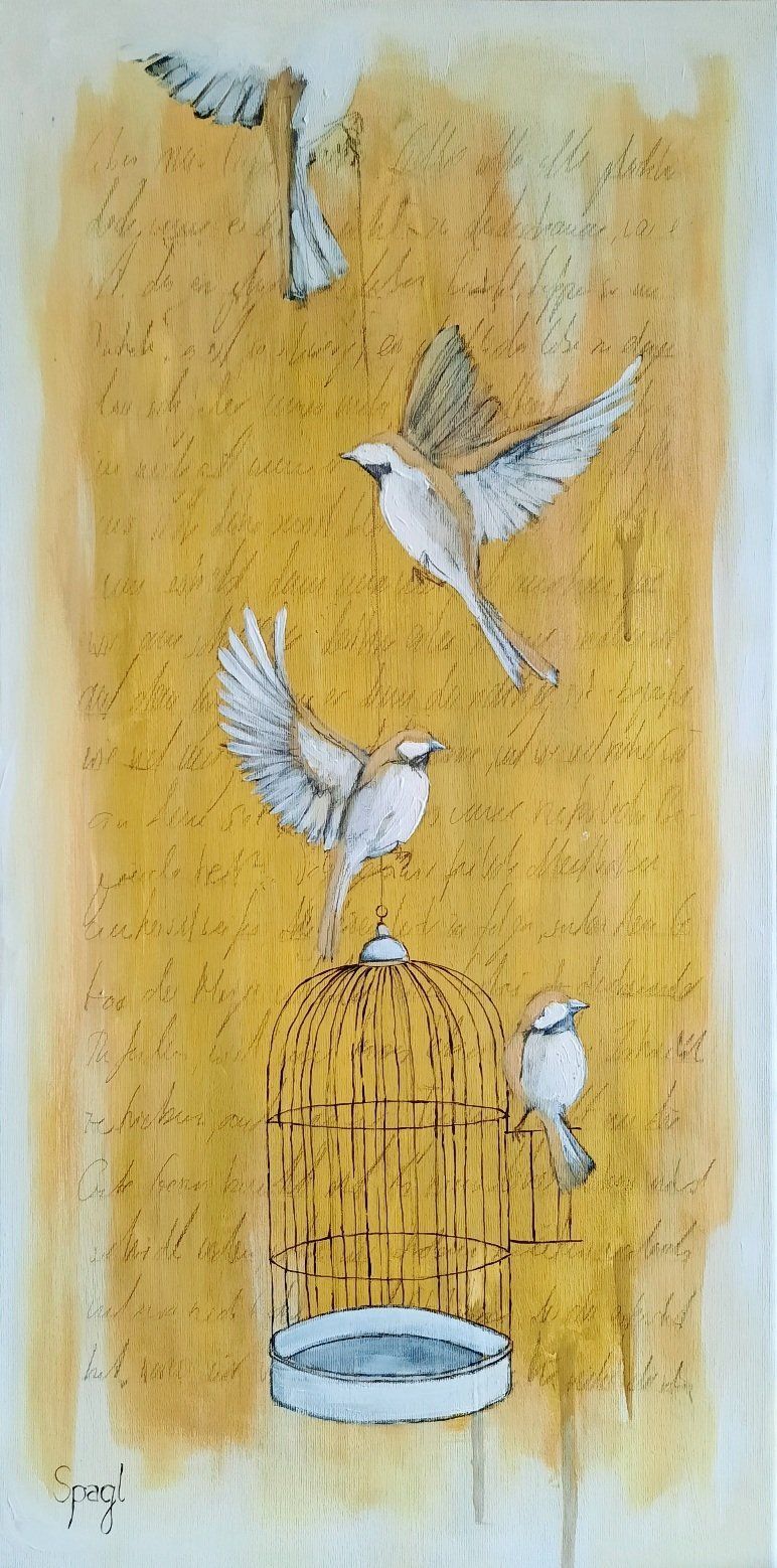 The birds and their cages are meant to represent the tension between freedom and security for the individual as well as on a societal level: